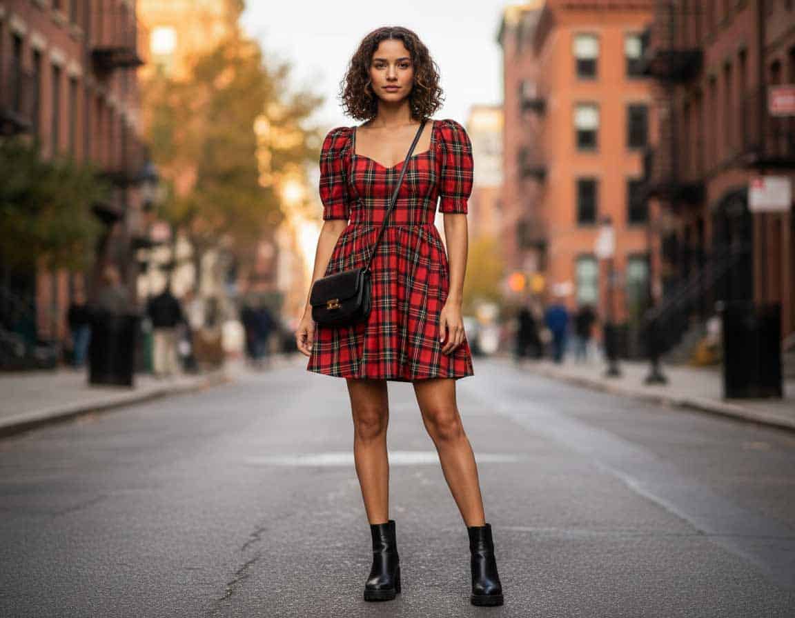 Wie man ein rotes Karokleid stilvoll kombiniert