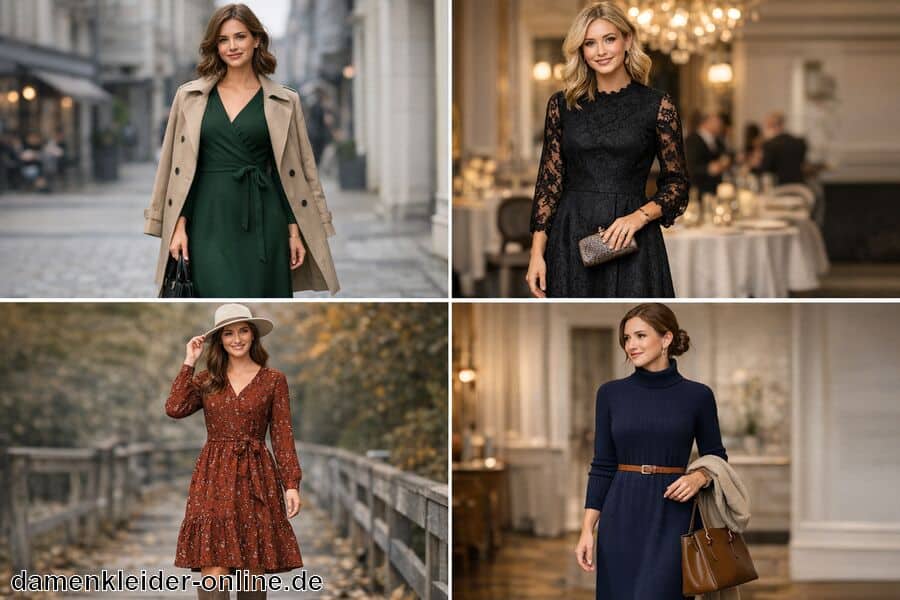Im Winter dominieren klassische Farben wie Schwarz, Dunkelblau oder Grau, ergänzt durch Akzente in Metall- oder Bordeaux-Tönen. Diese Farben lassen sich mühelos mit anderen Kleidungsstücken kombinieren und bringen Eleganz in den Alltag. Es empfiehlt sich, saisonale Farbtrends zu berücksichtigen, um das Outfit stets modern und passend zum jeweiligen Anlass zu gestalten. So wird das Kleid auch bei wechselnden Temperaturen stets stilvoll getragen.