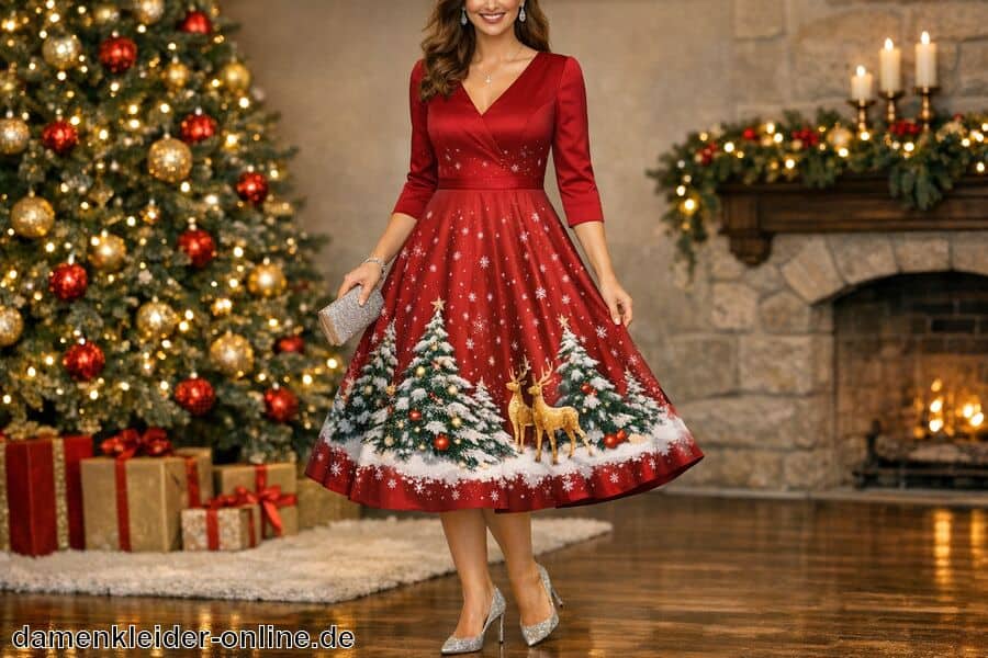 Ein festliches Weihnachtskleid im A-Linien-Schnitt ist die ideale Wahl für besondere Anlässe während der Feiertage. Es vermittelt eine elegante und stilvolle Ausstrahlung, die bei jeder Art von Feier für Eindruck sorgt. Das fließende Design betont die feminine Silhouette und schafft gleichzeitig ein angenehmes Tragegefühl, sodass man sich den ganzen Abend über wohlfühlt.