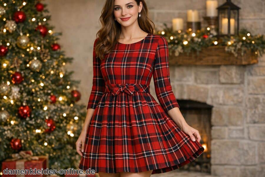 Ein Weihnachtskleid in Rot kariert ist eine zeitlose Wahl, die sowohl Stil als auch Festlichkeit perfekt vereint. Das klassische Karo-Design verleiht dem Outfit einen charmanten und eleganten Charakter, ideal für festliche Anlässe im Winter. Mit seiner warmen Farbpalette sorgt es zudem für ein behagliches Tragegefühl an kalten Tagen.